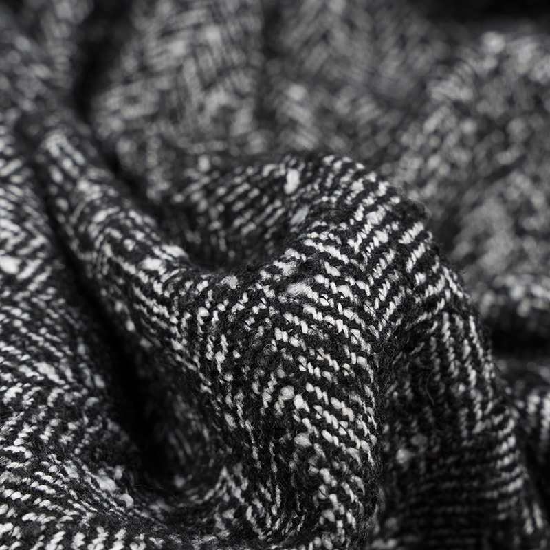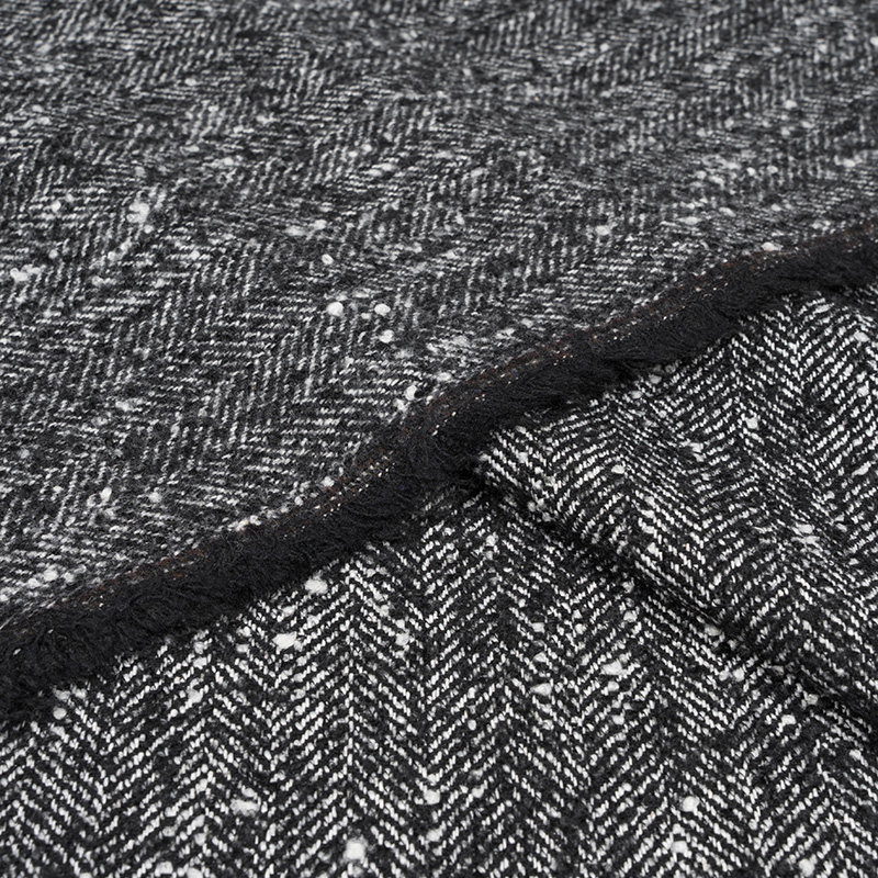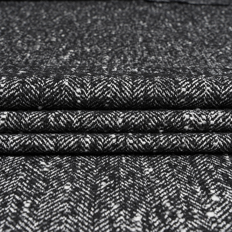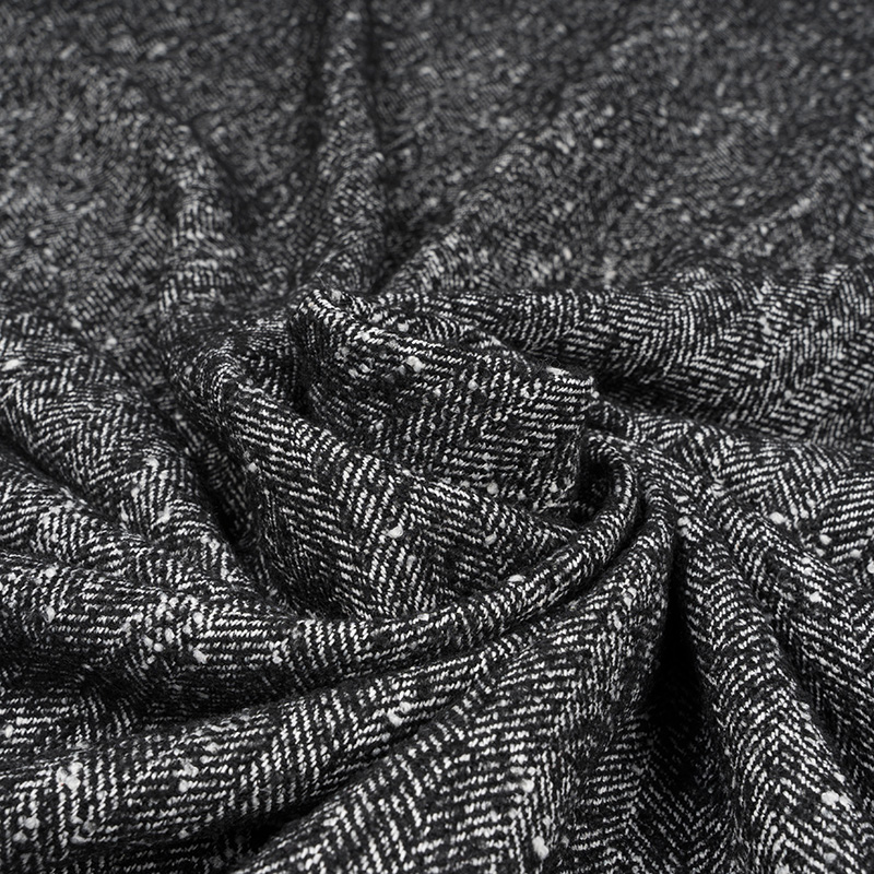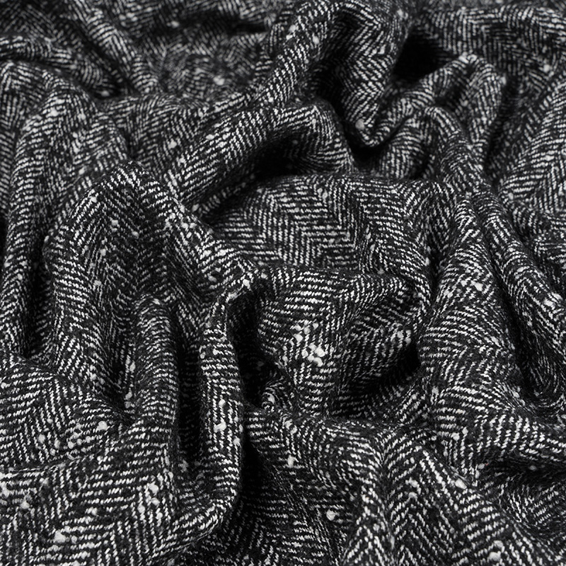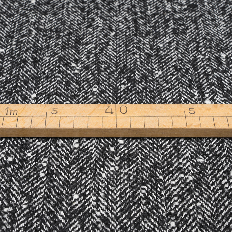 Tkanina Płaszczowa z Wełną Jodełka Czarny Melanż
