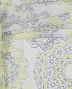 Szyfon to jedna z podstawowych tkanin wykorzystywanych w damskiej konfekcji. Materiał jest bardzo cienki, lejący się oraz lekko transparentny. Szyfon charakteryzuje się bardzo niską gramaturą. Tego typu tkanina nadaje się na bluzki, tuniki, a także sukienki składające się z wielu warstw. Z szyfonu wzorzystego można uszyć także plażowe pareo. Prezentowany szyfon jest w modnych w tym roku kolorach, przedstawia wzór florystyczny.