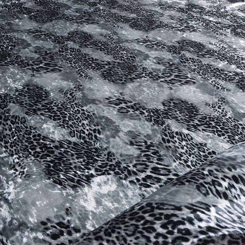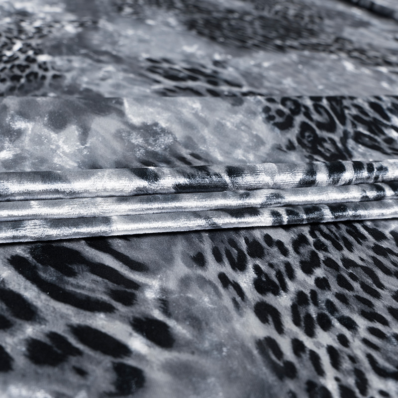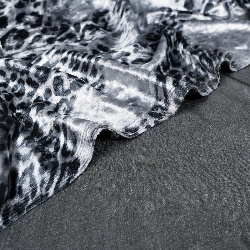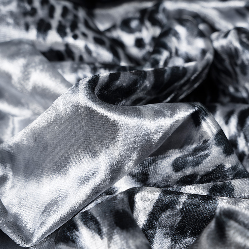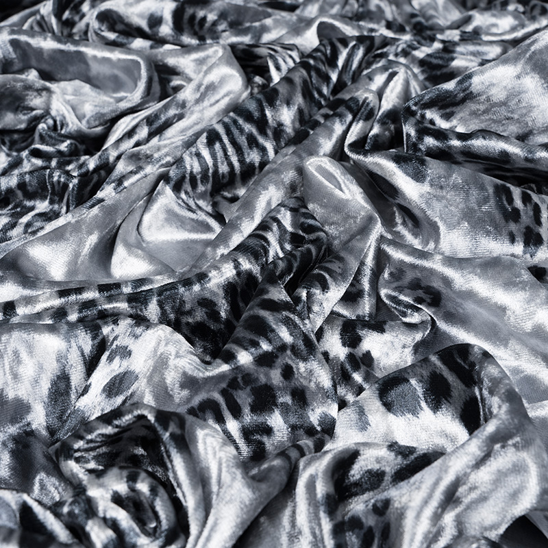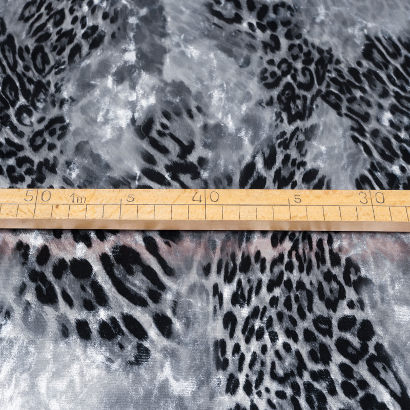 Kuba Welur Wzór 16 Pantera to efektowny, elastyczny materiał o miękkim, aksamitnym wykończeniu. Powierzchnia tkaniny delikatnie odbija światło, tworząc elegancki, satynowy połysk charakterystyczny dla welurów. Wzór pantery w odcieniach czerni, grafitu i srebrzystej szarości nadaje całości wyrazistego, modowego charakteru. Materiał jest rozciągliwy w obie strony, miękki i przyjemny w dotyku, dzięki czemu doskonale dopasowuje się do sylwetki. Dzianina Kuba świetnie sprawdzi się w szyciu ubrań, które mają łączyć komfort z elegancją. Można z niej stworzyć wieczorowe sukienki, tuniki, spódnice lub bluzki, a także elementy dekoracyjne – poszewki, narzuty czy tkaniny obiciowe o dekoracyjnym charakterze.