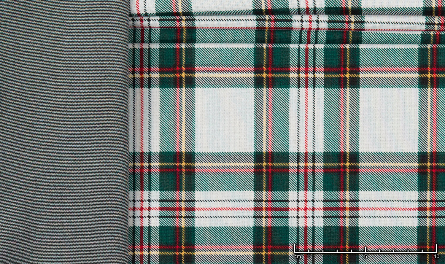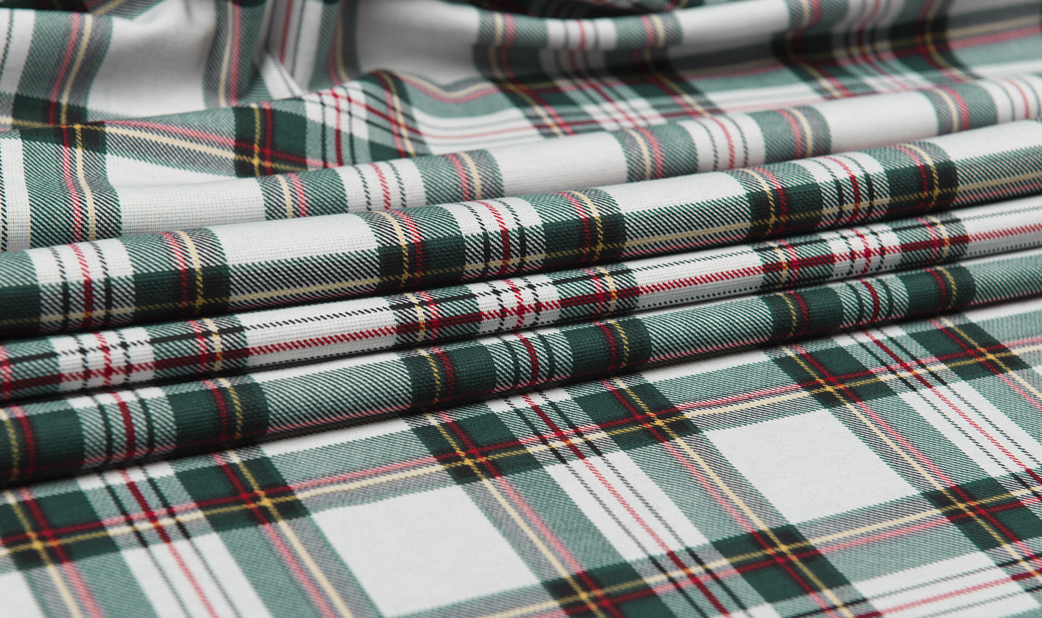 Dżersej morgan to uniwersalna dzianina, która ma szerokie zastosowanie. Dzianina morgan jest miękka, elastyczna, mięsista i przyjemna w dotyku. Materiał jest mieszanką wiskozy oraz włókien sztucznych. Z prezentowanej dzianiny można uszyć zarówno dzianinową marynarkę, jak i spódnicę lub sukienkę. Prezentowany wzór to typowa szkocka krata w widocznej kolorystyce, przeważający w wybranym wzorze to czarny, czerwony, biały, żółty i zielony.